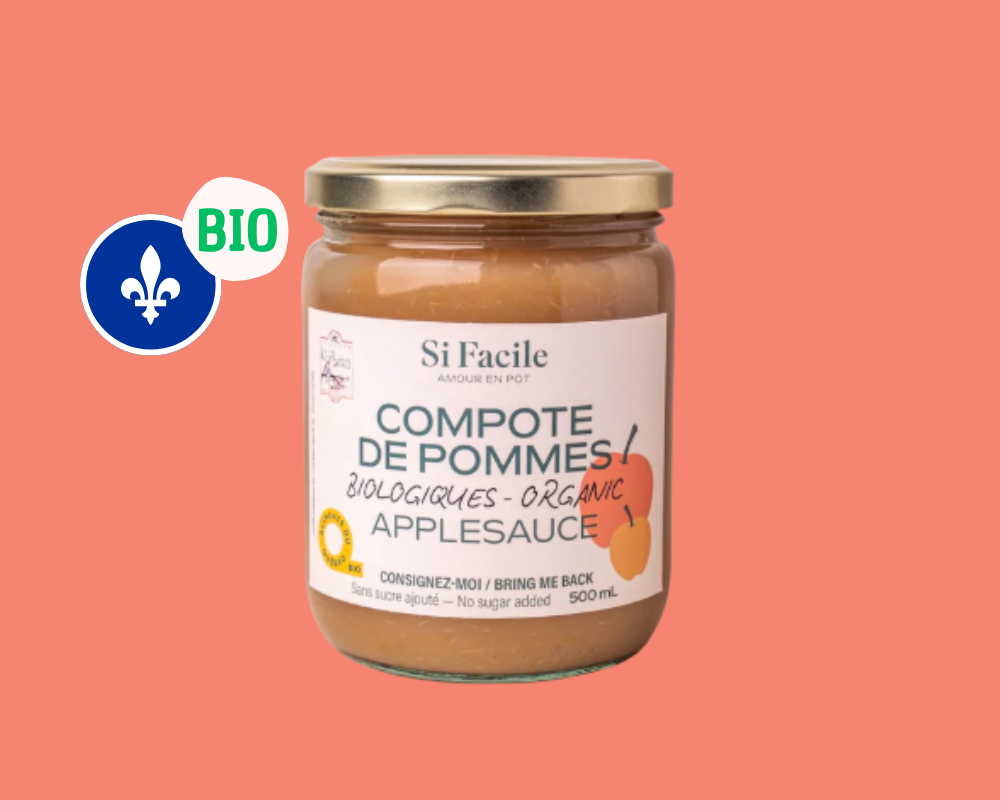 Des compotes de pommes bio et locales en contenants consignés. Juste du gros bon sens !